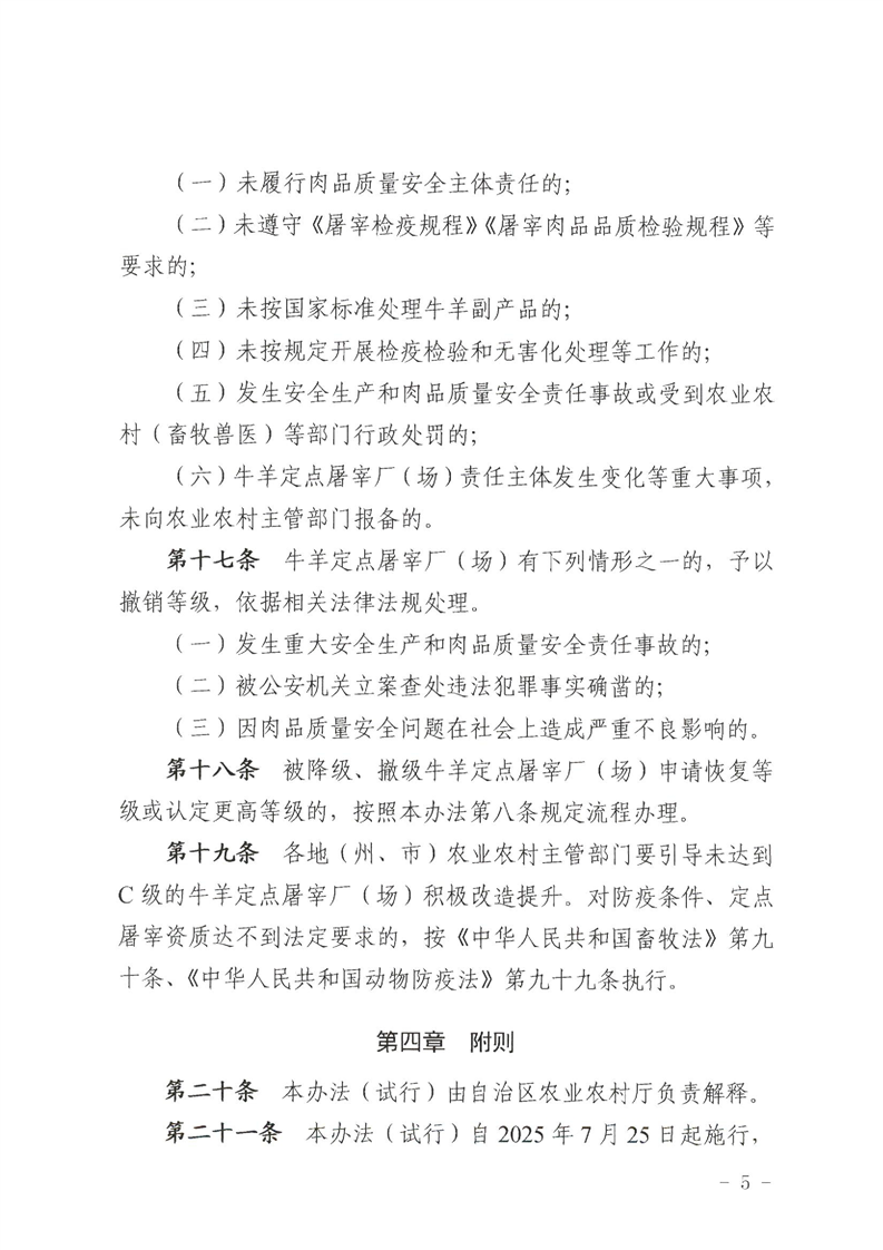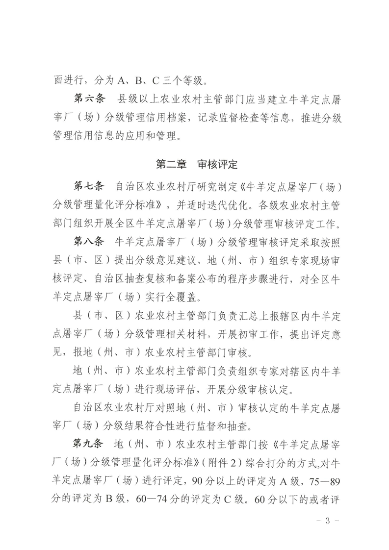 【本部门规范性文件】关于印发《新疆维吾尔自治区牛羊定点屠宰厂(场)分级管理办法(试行)》的通知